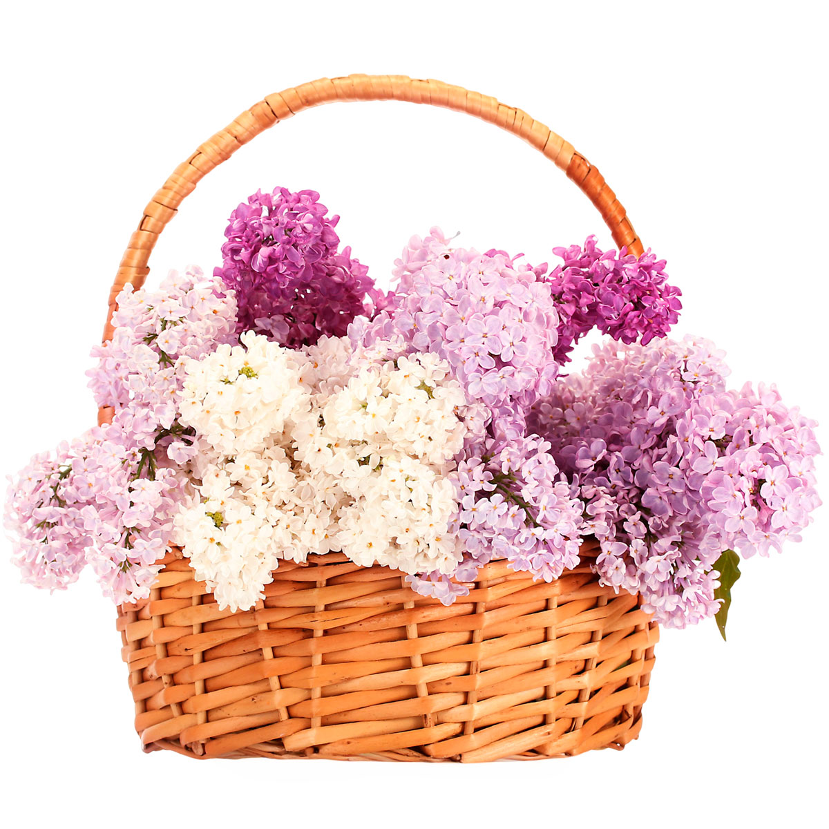 Сирень белая и розовая. Упаковка (Корзина, оазис, ящик).