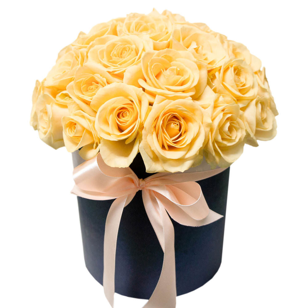 Цветы в коробке «Кремовые розы» с доставкой по г Железнодорожный (Балашиха): вы можете заказать букет в цветочном гипермаркете «Флормания» по цене от 2890 руб.