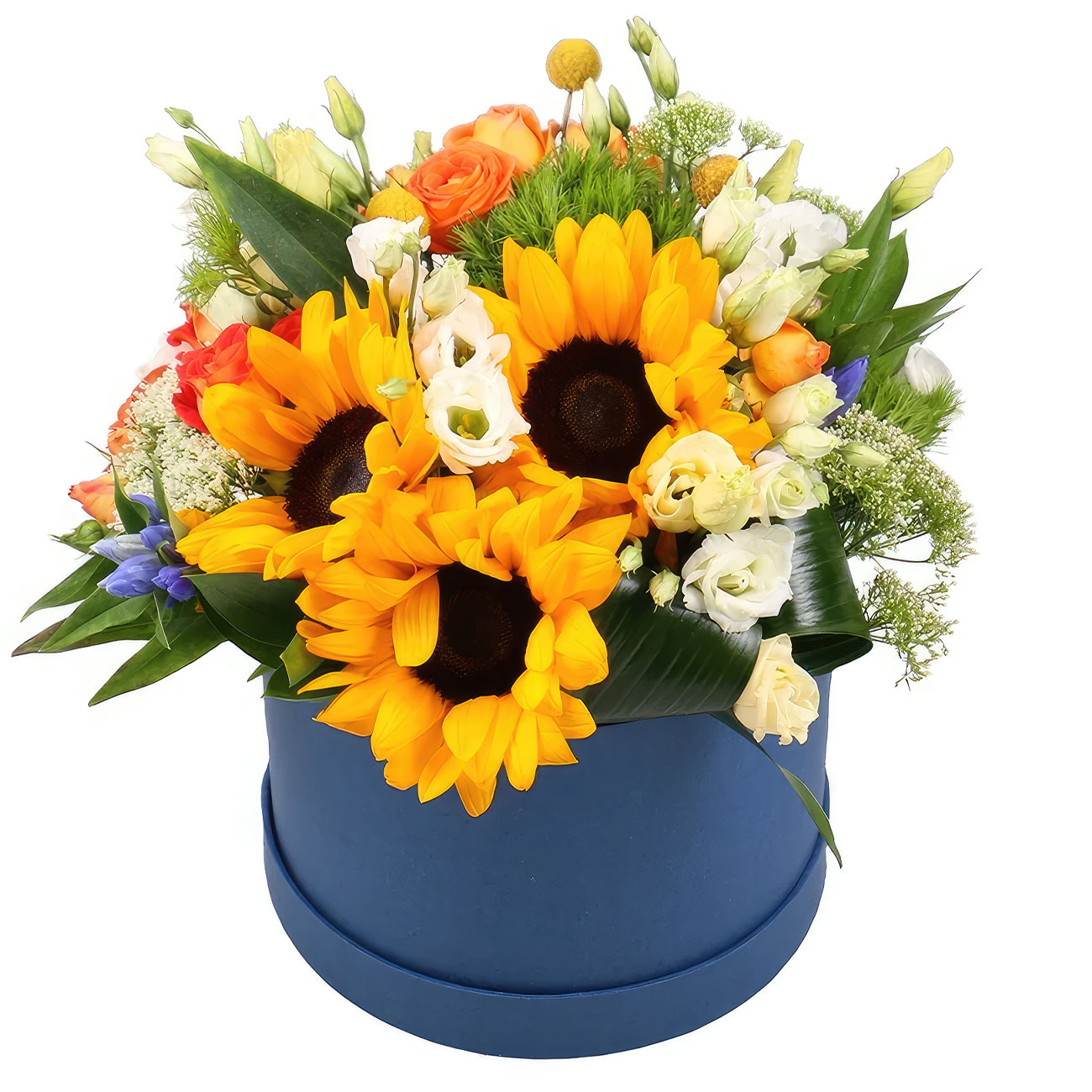 Цветы в коробке «Подсолнечное настроение» с доставкой по г Железнодорожный (Балашиха): вы можете купить букет в онлайн-магазине «Флормания» по цене от 2890 руб.