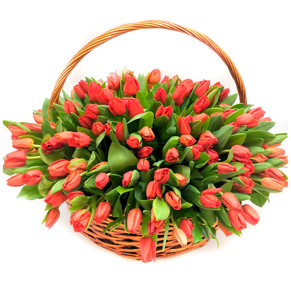 Цветы в корзинке «Красные тюльпаны» с доставкой по г Железнодорожный (Балашиха): вы можете купить букет в онлайн-магазине «Флормания» по цене от 3190 руб.